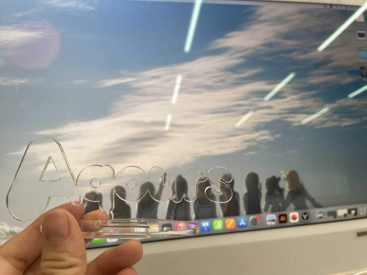学校でレーザーカッターの授業があっだので、アクリル版でAqoursのロゴのアクスタ作りました✌️