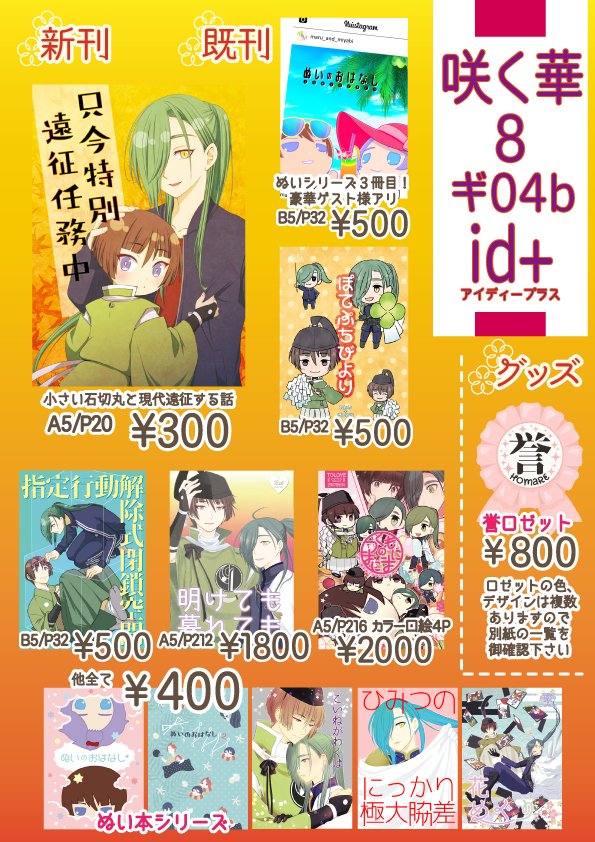 22 34 明日のお品書きとサンプルです~!よろしくお願いします。 机にものが載るのか心配… #咲く華告知 18/10/06 18:51
