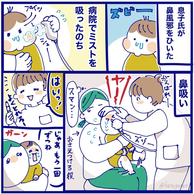 1 5 病院で鼻吸いしてもらったよ🤧 #漫画が読めるハッシュタグ #育児漫画 #育児絵日記 #育児あるある 23/07/01 02:25