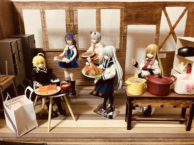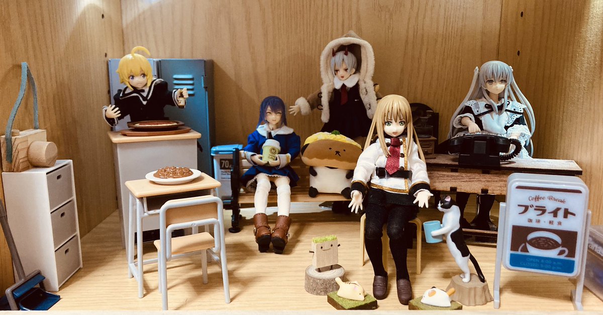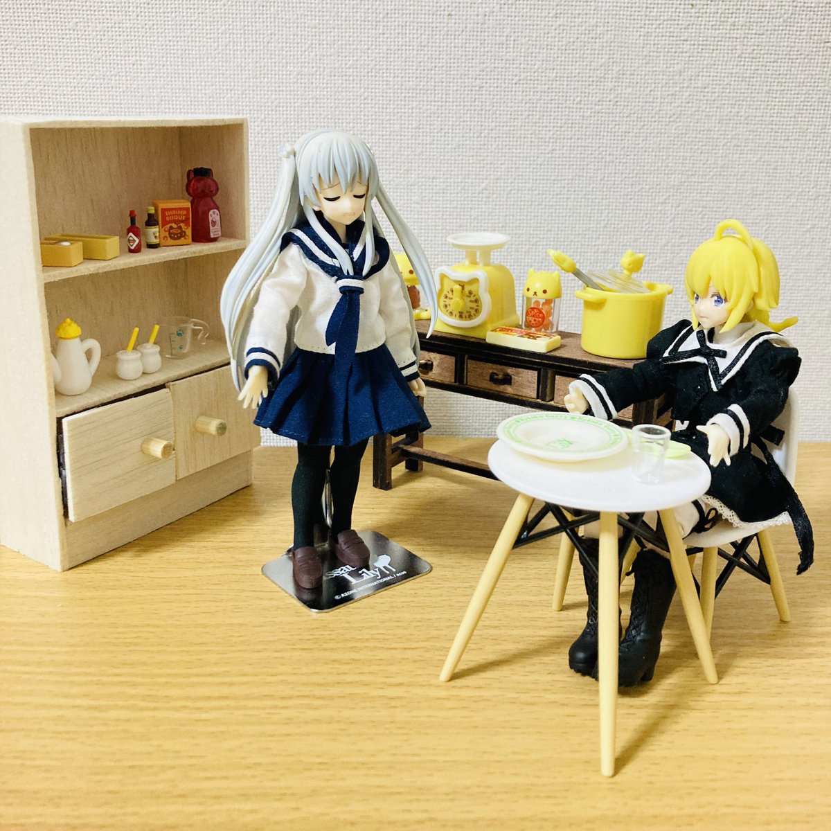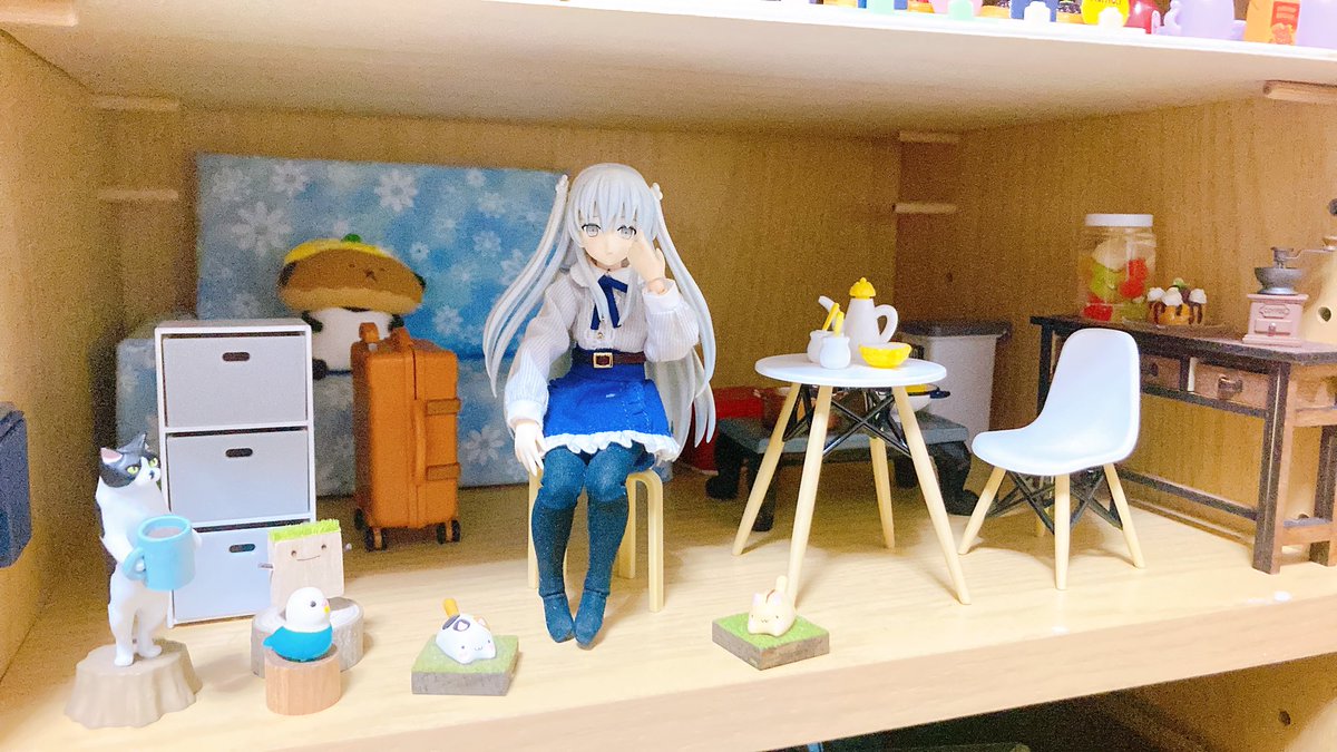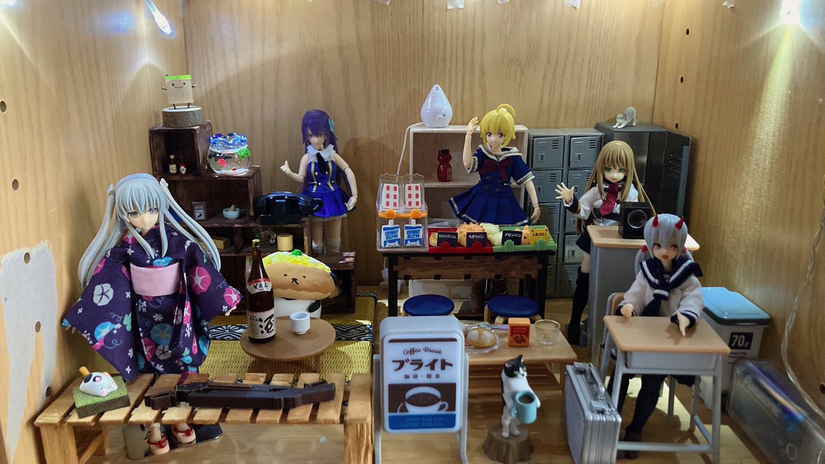 新年1発目の #ドル活 は小物整理から始めました! 既存の本棚に100均のダボと木材を組み合わせて 上側:ショウケース 下側:1/12の居住スペース お気に入りのにゃんこシリーズ(ガチャガチャ)が増えてきたので、飾ってみた!🐈 #アサルトリリィドール部