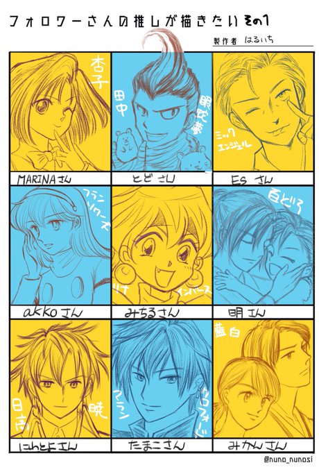 フォロワー様、覚えておいでてはないかもしれませんが去年受けたリクエストその2になります…リクありがとうございました! @pat_nakasumi @rikka815 @nauriutou0609 @nectarine_ring @mia_mia_miaaaaa @renicrazy @fumikadokko @LaxumiJunklover @norachiday #フォロワーさんの推しが描きたい