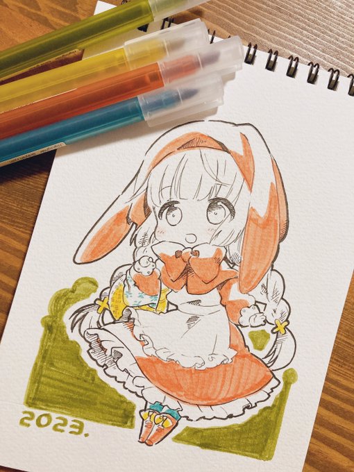 54 161 今年もデレステ楽しむぞ! #依田芳乃 テレビもパソコンも無い生活をしているので今後もアナログ絵です 写真のはローソンの無印で見つけためちゃくちゃ好みの配色マーカー ローソン無印助かる〜☺️ 23/01/02 22:25