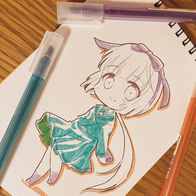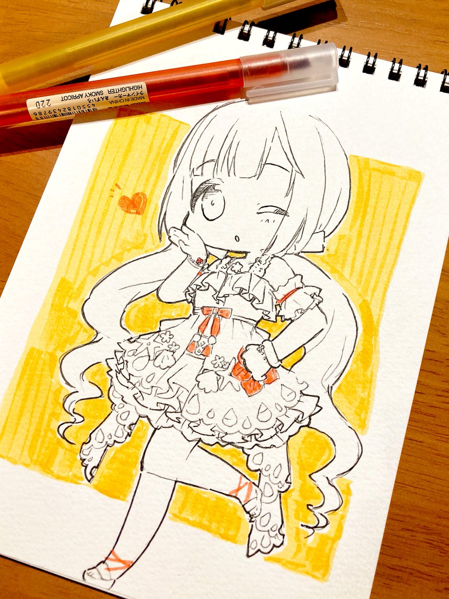 今年もデレステ楽しむぞ! #依田芳乃 テレビもパソコンも無い生活をしているので今後もアナログ絵です 写真のはローソンの無印で見つけためちゃくちゃ好みの配色マーカー ローソン無印助かる〜☺️