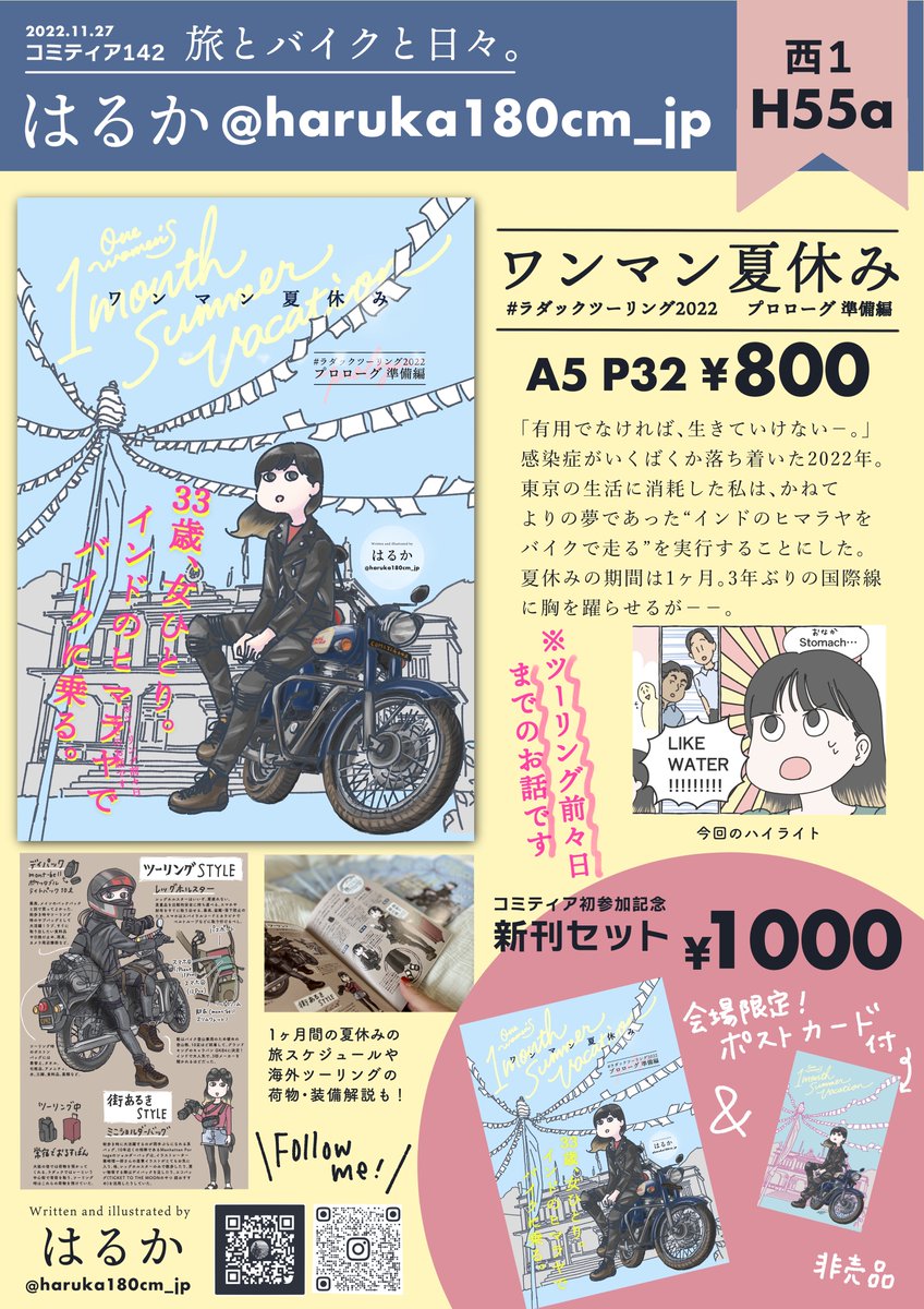 5/5(金祝) #コミティア144 東京ビッグサイト【さ14a】 5/21(日) #関西コミティア67 インテックス大阪2号館【G51】 にて、上記漫画 #ワンマン夏休み のVol.1とVol.2を頒布します! ステッカーやポストカードもあります~ 会場でお会いできれば嬉しいです😊