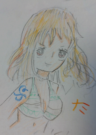 今日、ワンピースのナミを描きました。 影を一生懸命描きました