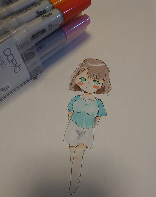20 581 女の子のイラスト描きました 友達が貸してくれたコピックで色も塗ってみました 23/06/22 17:59