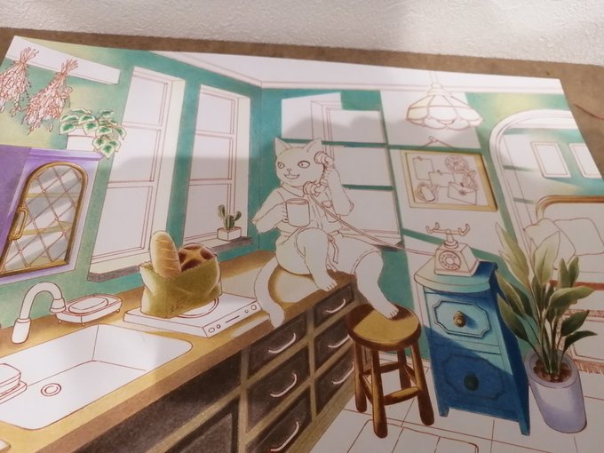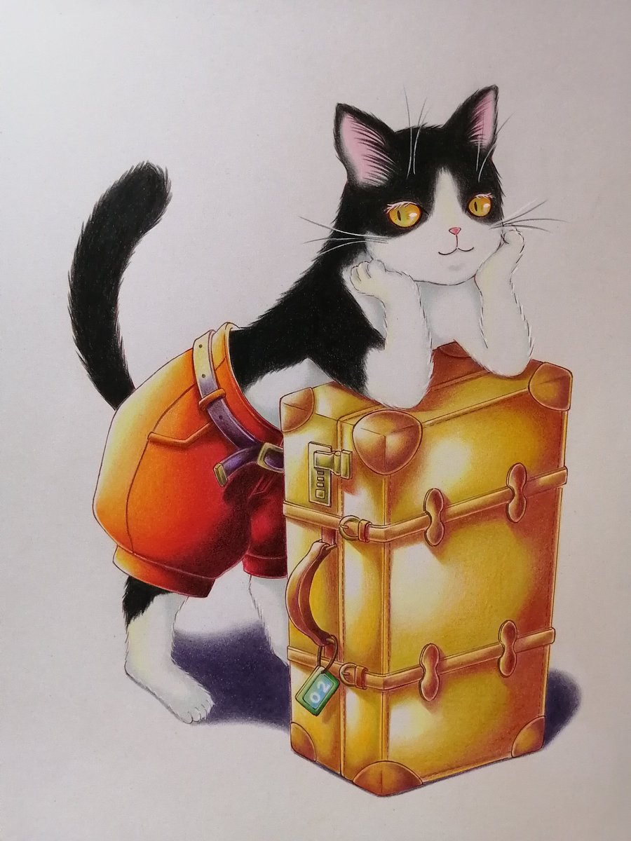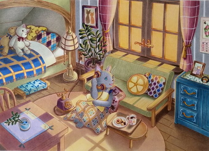 『空で繋がってる』 対の作品も完成しました🙌 小物とかお揃いの物があったりなかったり、、😌 見てくださってありがとうございました🤗 #色鉛筆 #色鉛筆イラスト #猫のいる暮らし #絵柄が好みって人がいればいいなぁ #illustration #colorpencil