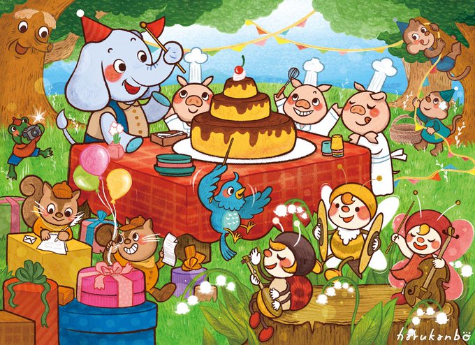 みんなで力をあわせて パーティの準備🍮 それぞれが おのおのの楽しみ方で わくわくしている空間って ほんとうに素敵🍮🎁🎸📸 #illustration #イラストレーション #オリジナルイラスト