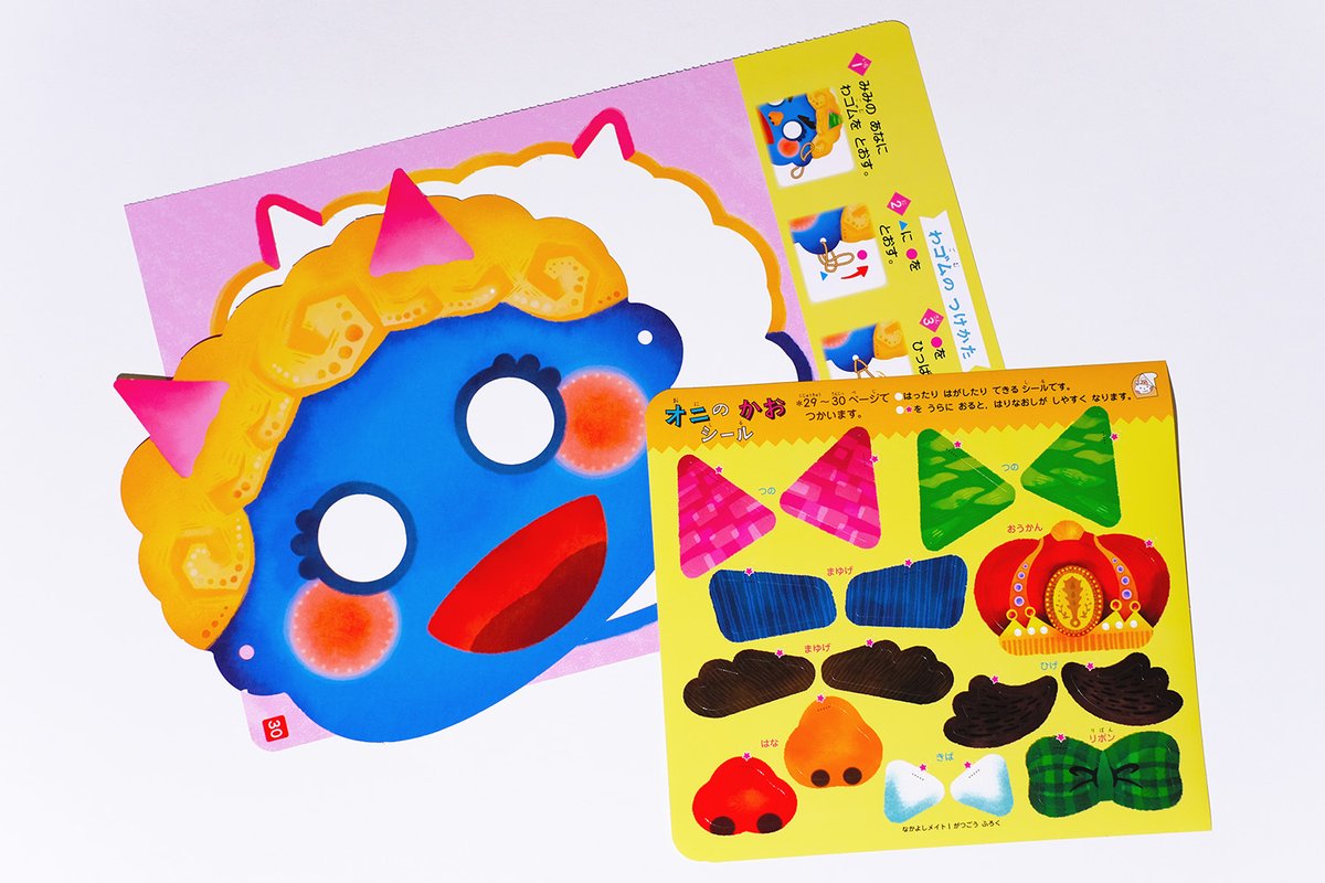 🍀お仕事🍀 なかよしメイト1月号、えほんであそぼうのコーナー「オニのおめん」ページを担当いたしましたっ👹🫘 株式会社メイト様 アカオニをくるっとひっくり返すとアオオニに💫 お面のお仕事は初めてでしたが可愛くできたぞ〜💪とっても楽しかったです! #illustration #イラストレーション #節分
