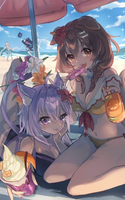 #あくあーと #暑いので水着絵で体温調節する 海の家のかわいいメイドさん ♪