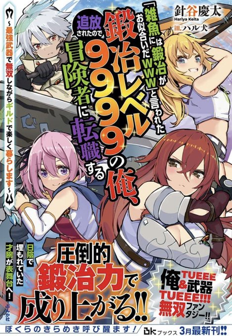 BKブックス様から針谷慶太先生(@hariyakeita )の『「雑魚には鍛冶がお似合いだwww」と言われた鍛冶レベル9999の俺、追放されたので冒険者に転職する』のイラストを担当させて頂きました!3月4日発売になります!どうぞよろしくお願いします!🙏🙏 amazon.co.jp/dp/4821146118/