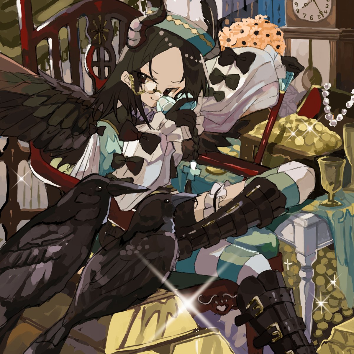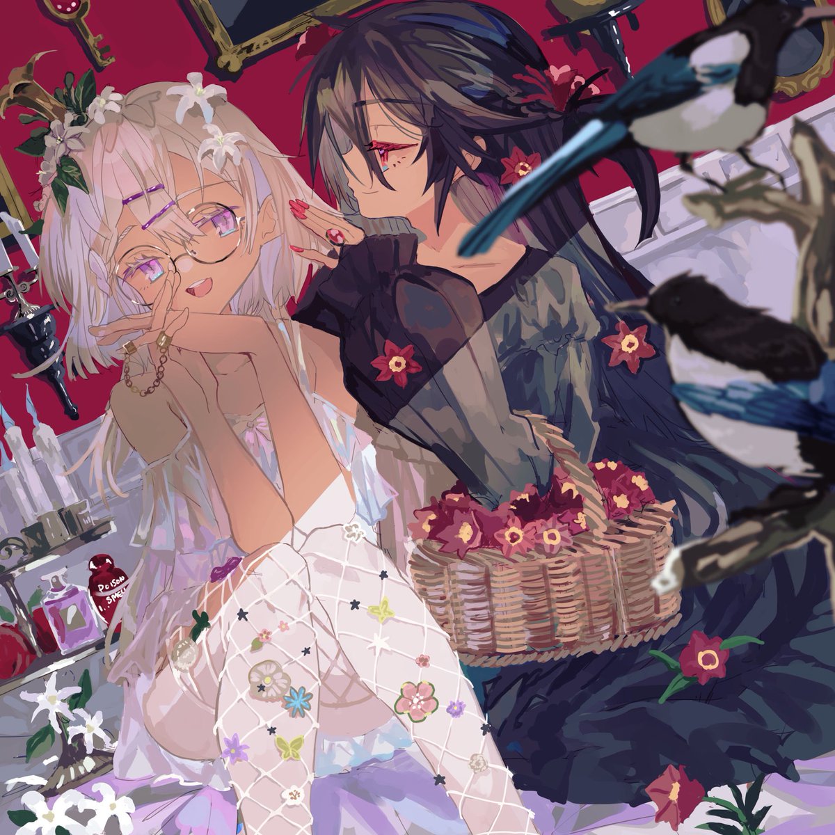 『噂するカササギ』 #イラスト #illustration #絵柄が好みって人にフォローされたい