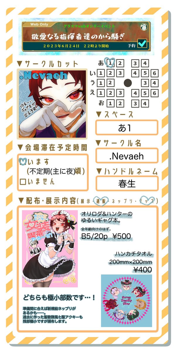 #グラスマWebオンリー テンプレお借りしました! ギャグ本とハンカチあります。 間に合えばネップリします。当日、余裕あればエアスケブも受け付けようかと思います〜。 よろしくお願いします😊❤️