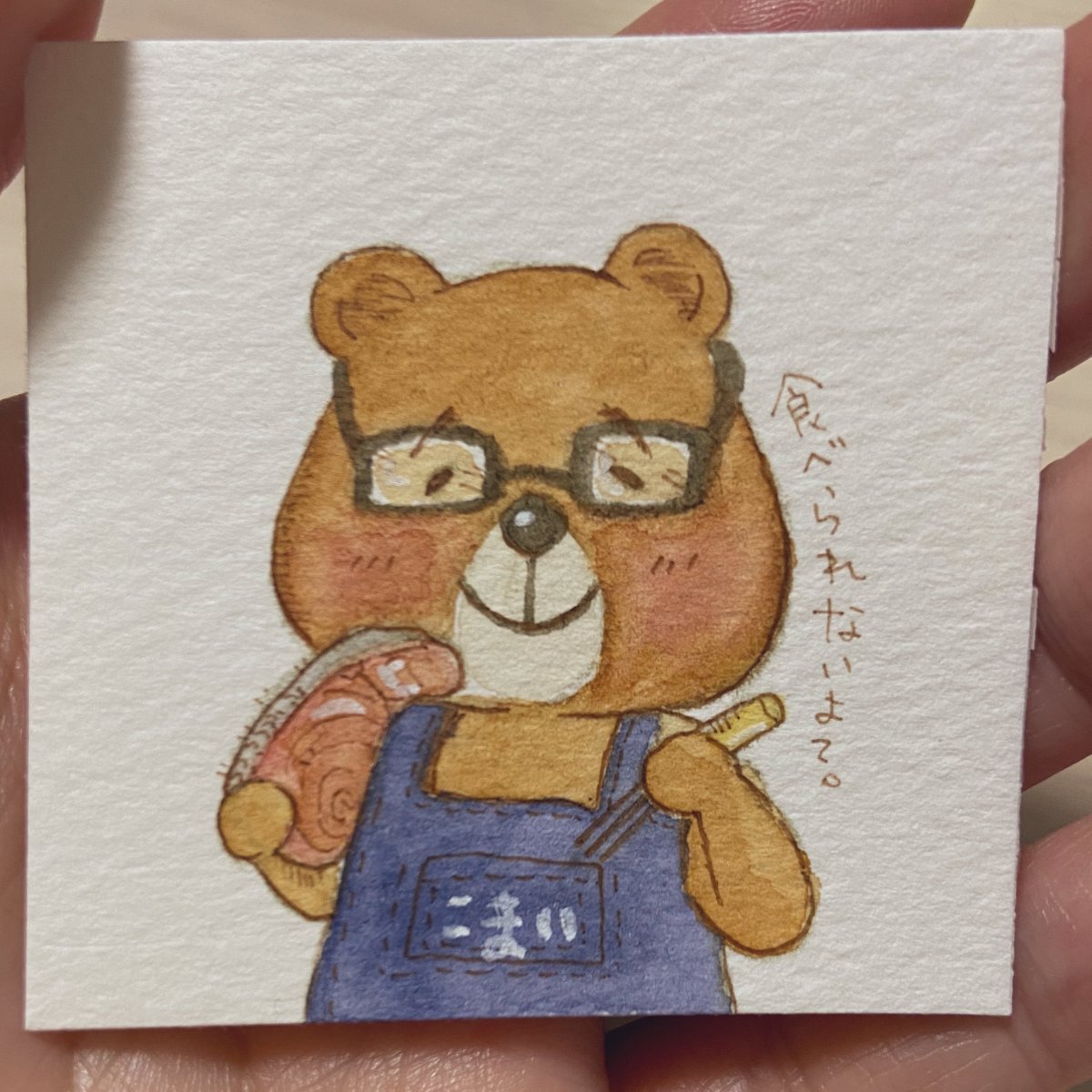 食べられないけど美味しそうなものをたくさん作ってるこまいさん(@komai_staff ) クマクマ!鮭とくま。 #ハルキでファンアート #透明水彩 twitter.com/komai_staff/st…