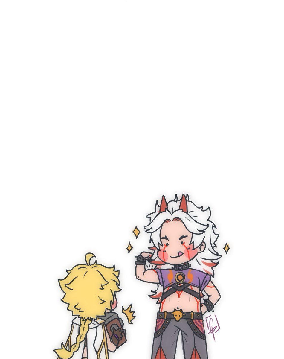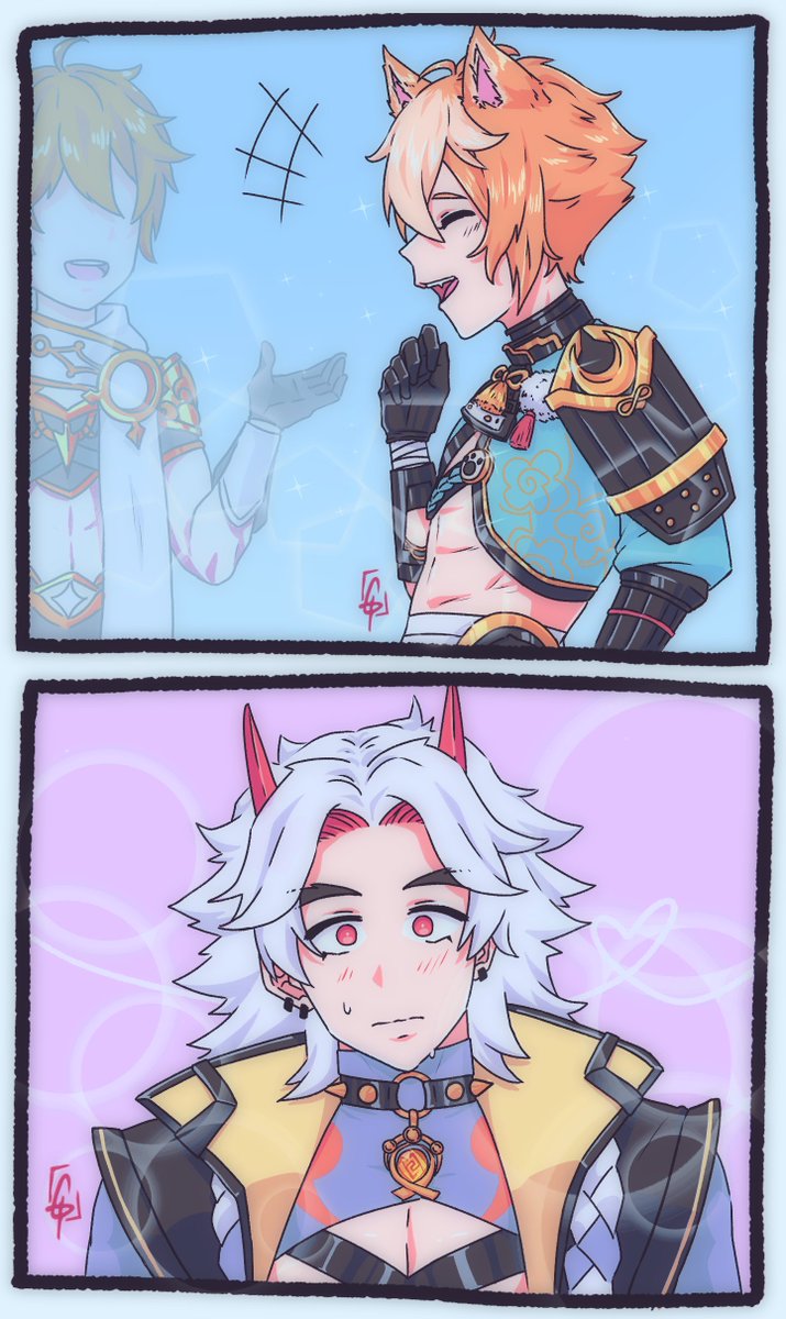 Estoy probando un nuevo pincel y coloreado 🤔🧐 #ittorou 💘 #Itto #aratakiitto #gorou #Genshinlmpact #genshin #genshinimpactfanart #bl #love