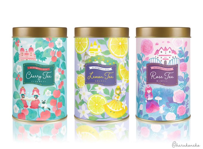 架空の紅茶のパッケージデザインです☕️🌸全3種。 おとぎの城に住むお姫様たちのティータイムをテーマに、お茶の時間がわくわく楽しくなるようなメルヘンイラストを描きました☺️ #パッケージデザイン