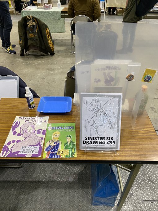 11 13 30日東フ28b unit-タケハル、今回はおとなしいディスプレイです。新刊は1冊スーペリア・フォーズ・オブ・スパイダーマンを中心としたスケッチ本とマーベルドラマを中心としたイラスト本の両面表紙です。よろしくお願いしますー。 #C99 21/12/30 08:38