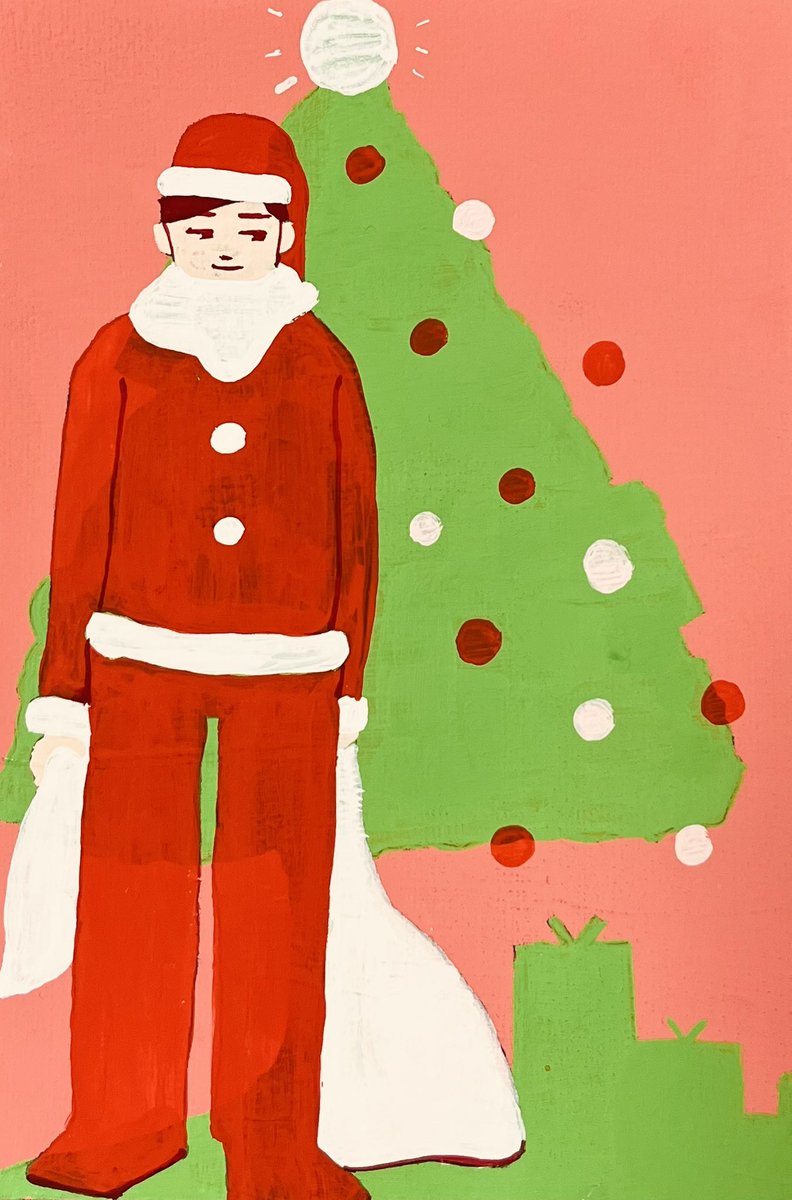 77日目。サンタ業大変ですよね、みなさんお疲れ様です。 #アナログイラスト #acrylicpainting #illustration #イラスト #アクリル画 #painting #アナログ画 #artwork #イラストレーション #MerryChristmas