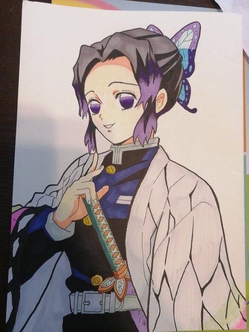 久しぶりのツイートです。2時間弱。最近19巻まで読んで、20巻を即購入し、待ち遠しいです。 #鬼滅の刃 #模写 #胡蝶しのぶ #イラスト