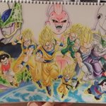 親子3人お絵描き対決第二弾! 今回はセル。 色と形のバランスのよさで、また子どもたちの勝ち!!くやしい!! #ドラゴンボール #コピック #模写