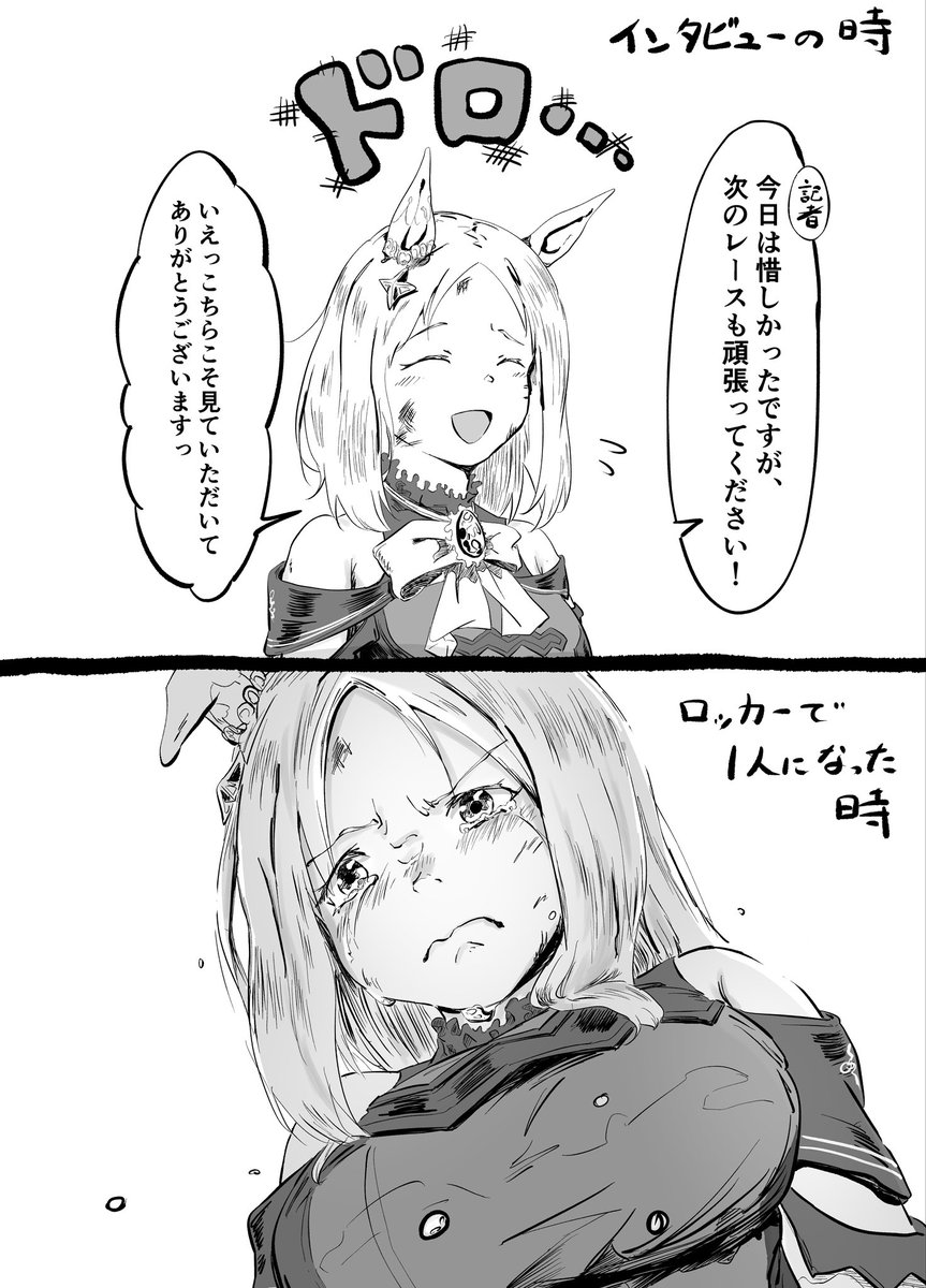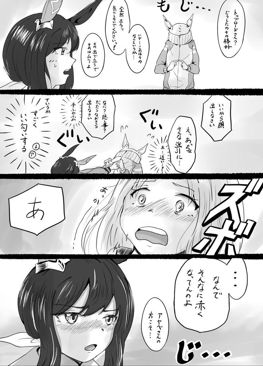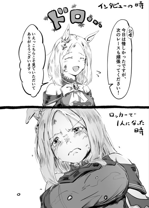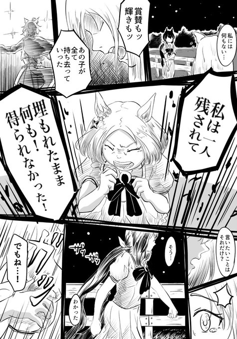 1年前の絵だけどこれ、レースになかなか勝てず溜め込んだ感情を爆発させるトプロとそんな彼女を励ますアヤベさんの漫画 昔はトプアヤの供給が乏しくて己の幻覚に頼るしかなかったんじゃよ……(かつての荒野に溢れる泉を見て嬉しそうに目を細めるじじい) #ウマ娘 #ナリタトップロード #アドマイヤベガ