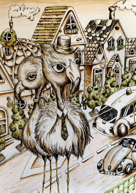 7 145 久しぶりのペン画です! フラミンゴ🦩のつもりが頭大っきくなっちゃった… #ペン画 #モノクロ #お絵かき #フラミンゴ #絵 20/01/18 11:58