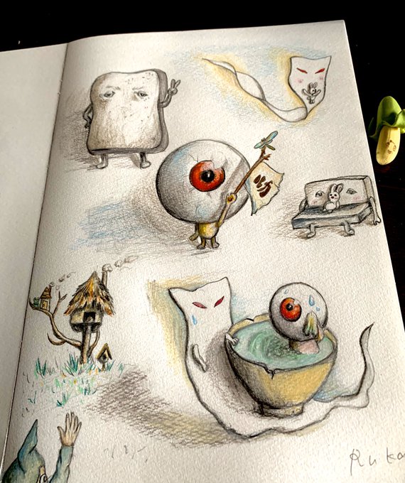 13 236 #色鉛筆画 目玉のおやじ達をお絵かき 20/07/04 16:33