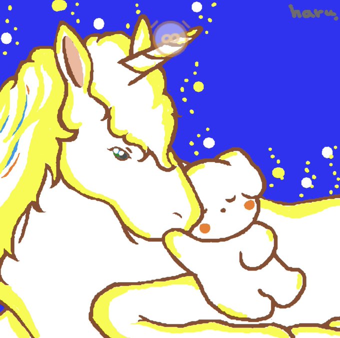 2 43 夜も心も護ってくれるユニコーンさんと、安心感に包まれ眠いる純粋、忠誠心の塊の象徴犬さんを描きました⭐ 芯から強くなりたいその気持ち支えてくれます✨☺ 安心、純粋、気高さ、強さ、美しさ。 を意図して描きあげました⭐✨ 22/01/10 02:13