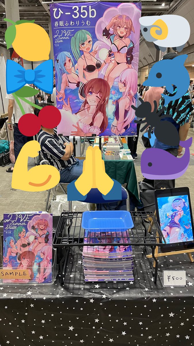 【C100夏コミ新刊告知・サンプル】 1日目(土)西ひ-35b 春眠ふわりうむ 新刊『.LIVE SUMMER DAZE』 B5/フルカラー24P(表紙込)/¥500 「#どっとライブと過ごす夏」をテーマに描いたファンアート集を頒布します。 宜しくお願いします🙏 (よろしければ買う予定の方ツリーのアンケにご協力願います!)↓