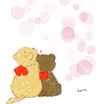 8 104 おそろいのリボン🎀なかよしこよし🐶🐻 #イラスト #絵描きさんと繋がりたい #テディベア 23/01/17 08:04