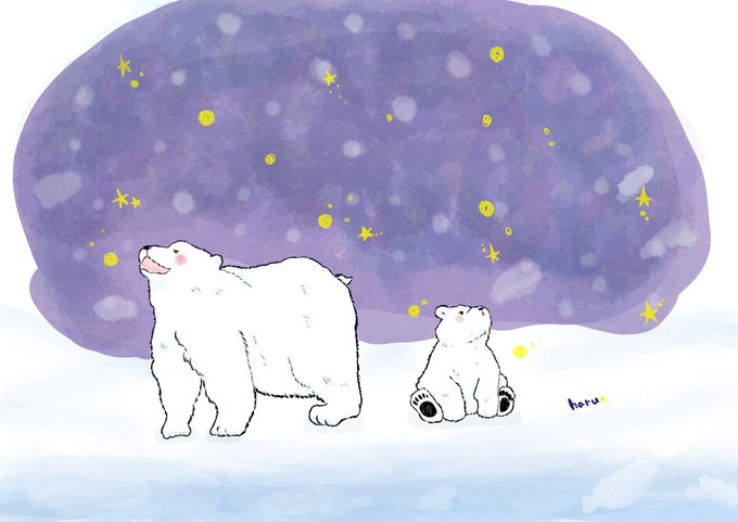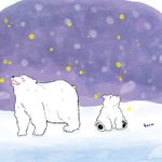 7 87 星空の下の親子(・(ェ)・) 『パパみたいにじょうずにできないや…🐻』 #イラスト #絵描きさんと繋がりたい #しろくま 23/02/17 08:00