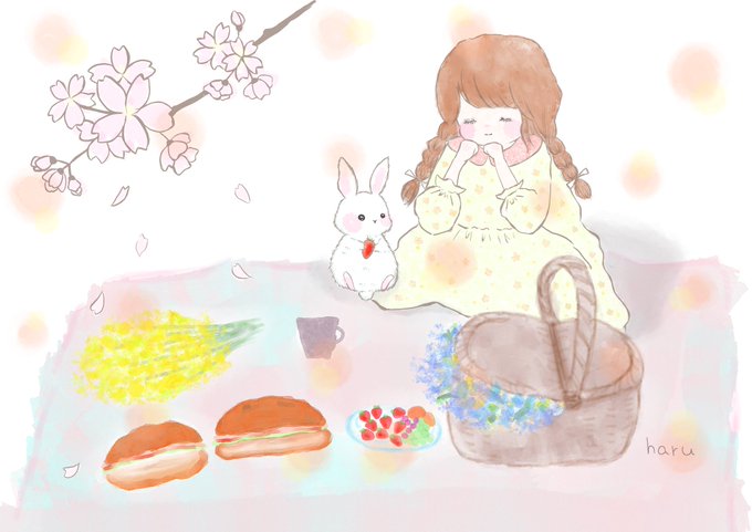 1 37 ポカポカ。あなたとピクニック🐰そんな春の日。 #イラスト #絵描きさんと繋がりたい #さくら 23/03/22 08:40