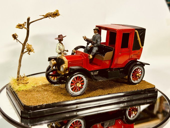 SMER 1/32 パッカード・ランドーレット1912完成しました!フィギュアはzbrushでモデリングした自作で、地面はジオラマ用マテリアルと庭に落ちてた小枝を使用しました。行きつけの模型店のコンテスト作品です。とても楽しく製作出来ました! #ピットイン模型部 #ハコプラ twitter.com/i/web/status/1…