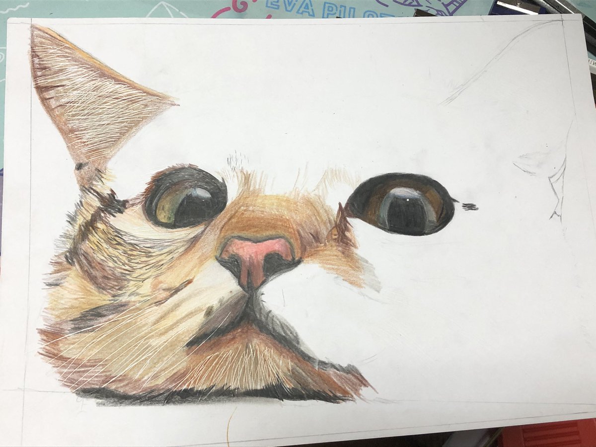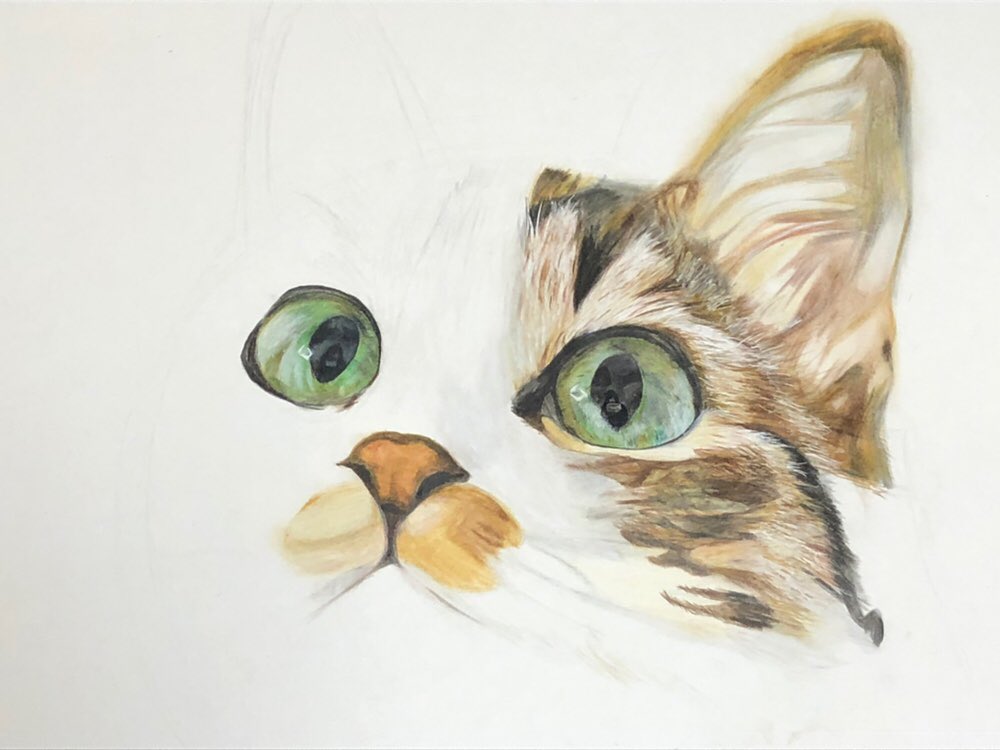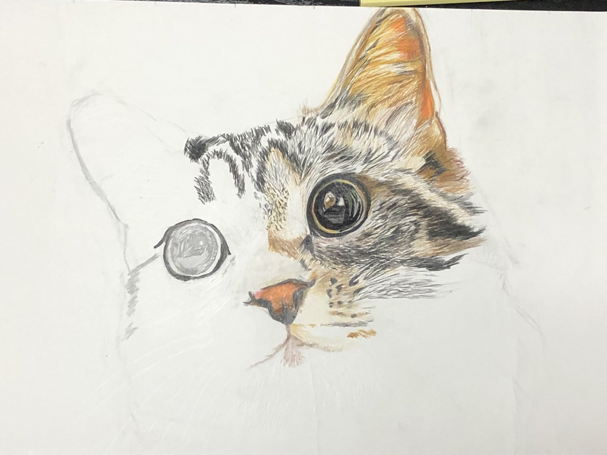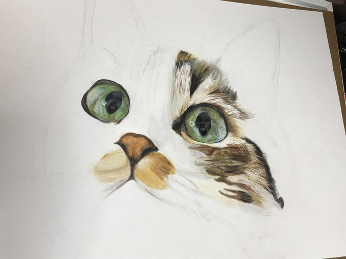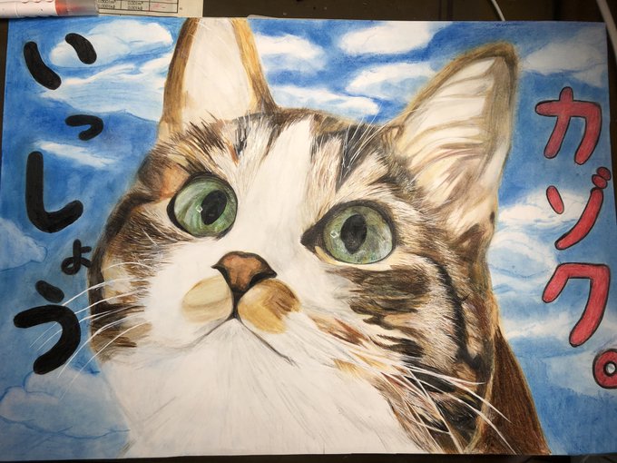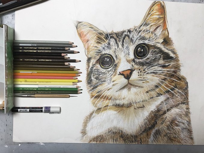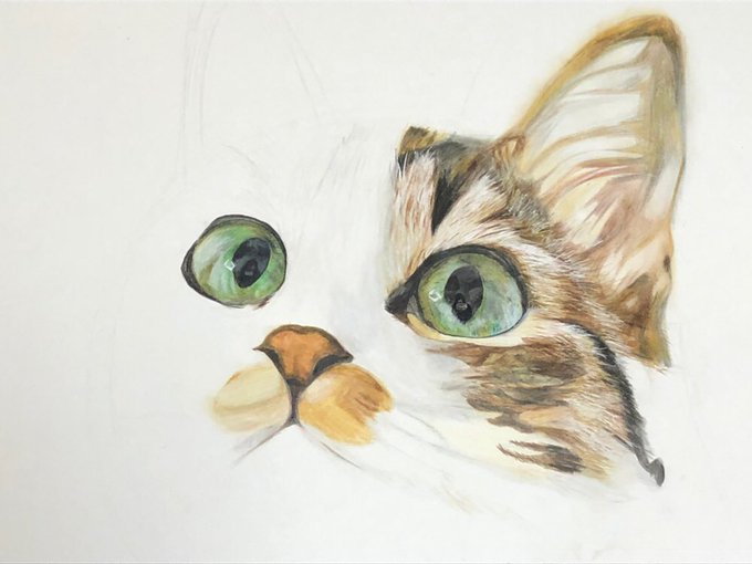 動物愛護のポスターに色鉛筆メインで猫を描いてみました! #色鉛筆 #猫 #動物愛護 #イラスト #中学生でこれは上手い方だと思ったらRT押してください #絵師さんと繋がりたい #猫好きさんと繋がりたい