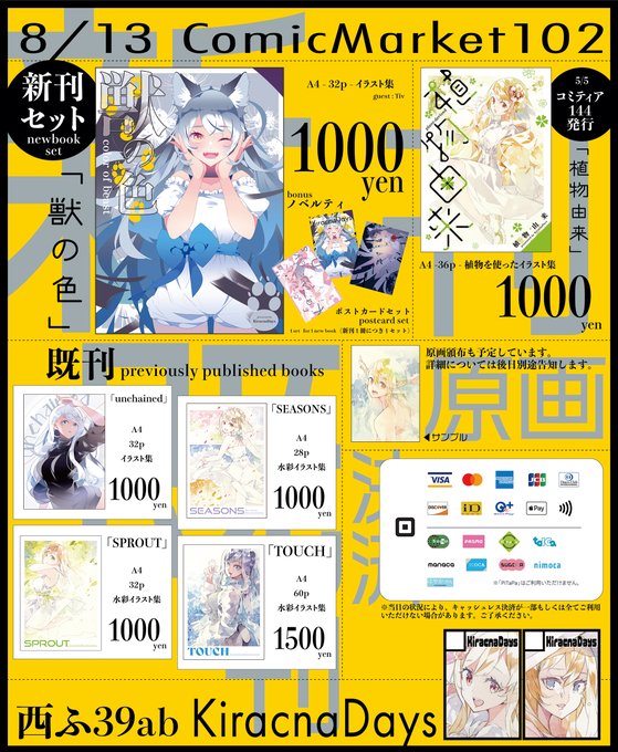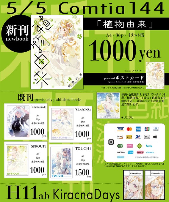 コミティアお品書きできました。 新刊は植物由来イラストと水彩イラストをまとめた本です。よろしくお願いします。原画/色紙頒布に関しては後日告知します。 #COMITIA144 #コミティア144 #COMITIA144お品書き