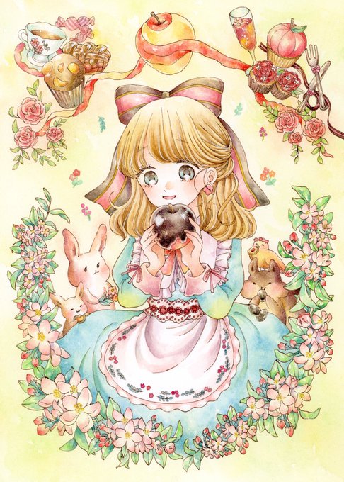 3 16 ハッピーバレンタイン🍫✨ 描いているうちに何故かりんご祭りになりました🍎 #ValentinesDay #バレンタインイラスト #透明水彩 23/02/14 19:10