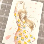 #今までで作画カロリーMAXの作品上げようぜ たぶんこれかなぁ 初めてミニ色紙に描いてみて小さい故の大変さを知った作品でした🌻