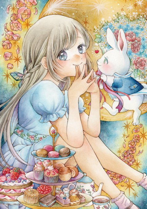 5 36 『再び、不思議の世界へ』 ●透明水彩、絵墨、色鉛筆、アルシュ水彩紙 ●2023.6 不思議の国のアリスの世界観を柔らかな色合いで描きました🌷 #むかしむかし、 23/07/15 20:57