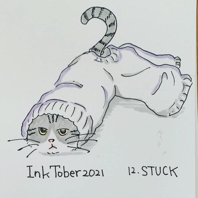 インクトーバー🖋 9.圧力/PRESSURE 朝の無言のプレッシャー🐱 #inktober #inktober2021 #inktober2021day9 #inktober2021pressure