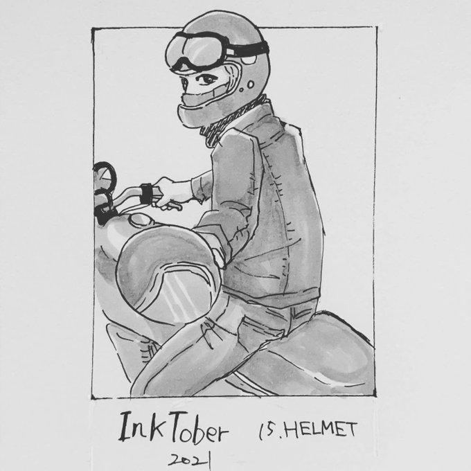 インクトーバー🖋 15.ヘルメット/HELMET #inktober #inktober2021 #inktober2021day15 #inktober2021helmet #kuretake_inktober2021