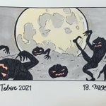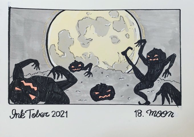 インクトーバー🖋 18.月/MOON 月に照らされ現る かぼちゃおばけ〜🎃 #inktober #inktober2021 #inktober2021day18 #inktober2021moon