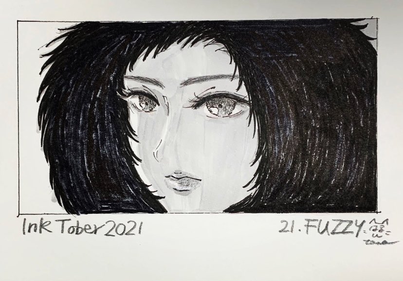 インクトーバー🖋 21.毛羽だった/FUZZY 民族衣装をイメージしたんですが 漆黒のもふもふになっちゃいました #inktober #inktober2021 #inktober2021day21 #inktober2021fuzzy