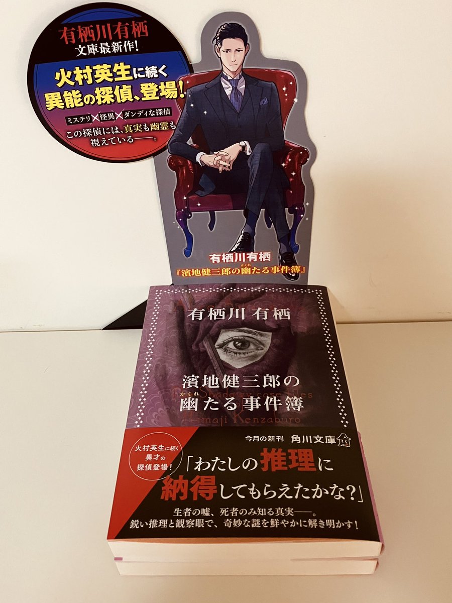 49 311 『濱地健三郎の幽たる事件簿』/有栖川有栖 (角川文庫) の新刊を送っていただきました! なんと、愛する濱地探偵の拡材イラストを描かせていただいてます。 1月24日発売です! 23/01/17 12:17