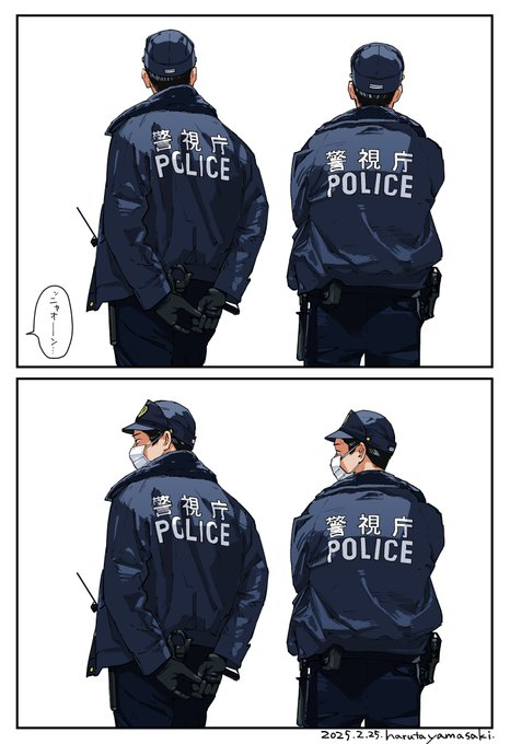 #今年も残りわずかなので今年一番伸びた作品を貼る こんなポリスメンに遭遇したいと思いながら描いたやつ シンクロ