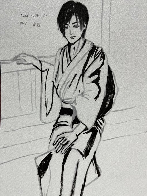 #インクトーバー #inktober2022 #inktober #Inktober_PerfectChallenge #パルマトーバー 旅行といえば旅館、という教えをいただいたので 旅館といえば温泉 温泉といえば浴衣 旅行は温泉旅館で浴衣!という結論 描き込み具合がわかりません 怖いからグレーを多用しちゃうのすみません 7.旅行