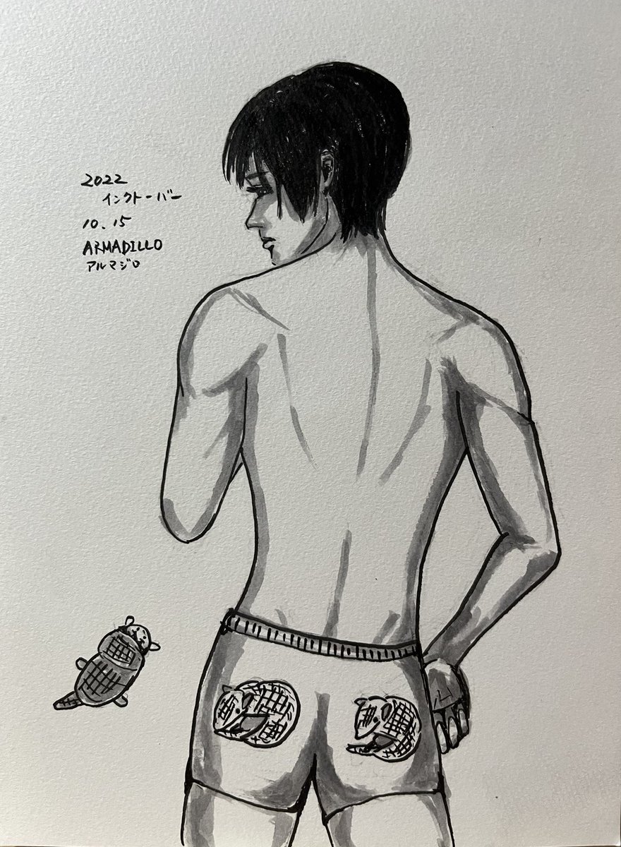 #インクトーバー #inktober2022 #inktober #Inktober_PerfectChallenge #パルマトーバー アルマジロである必要性🤔 可愛いかなって…… 15、ARMADLLO アルマジロ