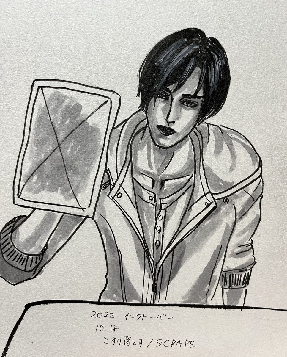 #インクトーバー #inktober2022 #inktober #Inktober_PerfectChallenge #パルマトーバー えーん、ペンで描けないよぅ いや、ここまで描けるようになったと 褒めるべきなのか…… 18.こすり落とす/SCRAPE