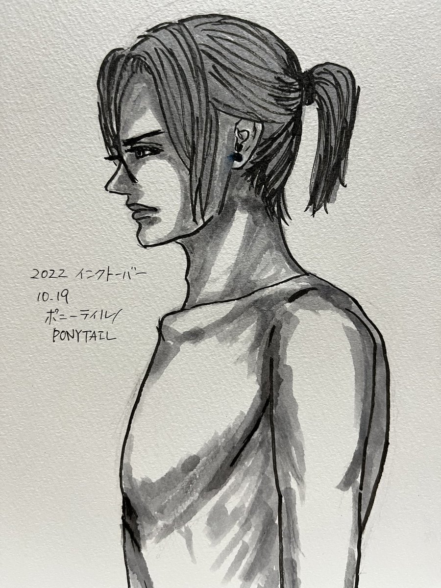 #インクトーバー #inktober2022 #inktober #Inktober_PerfectChallenge #パルマトーバー いつもとは少し違う髪型だけど 違和感はないかな この髪型が似合うのはアオイくんしか いない!と思いました。 だめかしら? 18.ポニーテール/ponytail