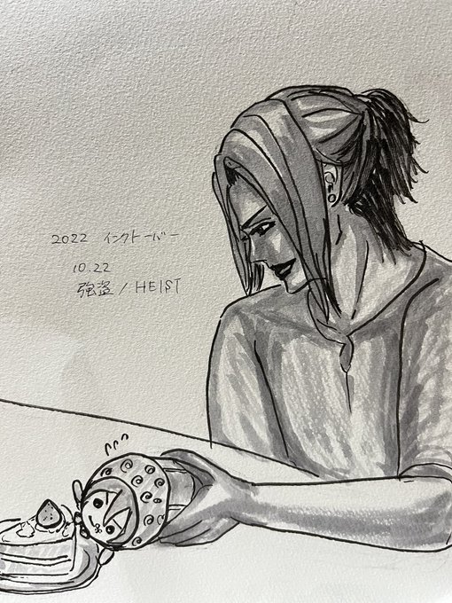 #インクトーバー #inktober2022 #inktober #Inktober_PerfectChallenge #パルマトーバー 🌻それ、俺のケーキなんだけど… 強盗、というよりはコソ泥…… アオころの分もちゃんとありますよ 22.強盗/HEIST