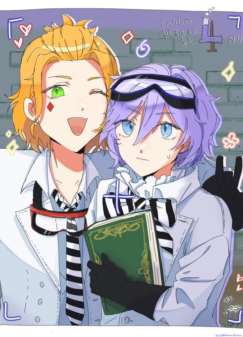 エペルの誕生日まであと4日!!!!!✨ 今日一绪にお祝福を捧げたのはけーくんです~⚗️ 🍎♦️ 遅刻した💦……ごめん><!!!!!!!! #エペル・フェルミエ誕生祭2022 #ツイステファンアート
